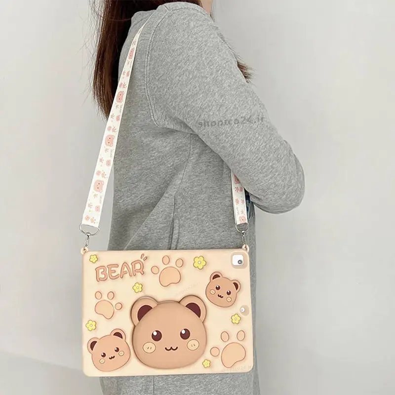 همراه کاور خرسی، یک بند ست ارائه میشود. این بند حمل تبلت را راحتتر میکند و کاربر میتواند تبلت را روی شانه یا گردن قرار دهد. بند با طراحی کاور هماهنگی کامل دارد و ظاهر محصول را زیباتر میکند.