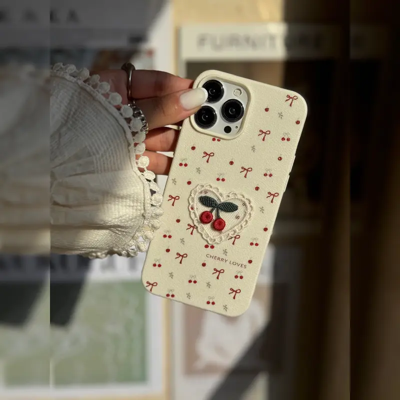 قاب آلبالو پاپیون Cherry Bow Tie با طراحی لطیف، دلنشین و کاملاً دخترانه، یکی از شیکترین و خاصترین قابهای مخصوص گوشی اپل iPhone 15 است. این قاب با رنگ کرم، طرحهای کارشدهی آلبالو، پاپیونهای کوچک و تکهدوزی پارچهای قلبیشکل، انتخابی فوقالعاده برای کسانی است که به جزئیات ظریف و طراحیهای خاص اهمیت میدهند.