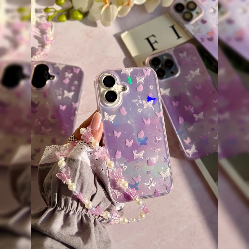 قاب پروانه رویایی هولوگرامی همراه با آویز Dreamy Hologram Butterfly With Band مناسب برای گوشی اپل iPhone 16 Pro Max