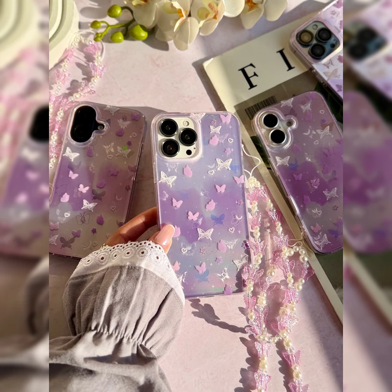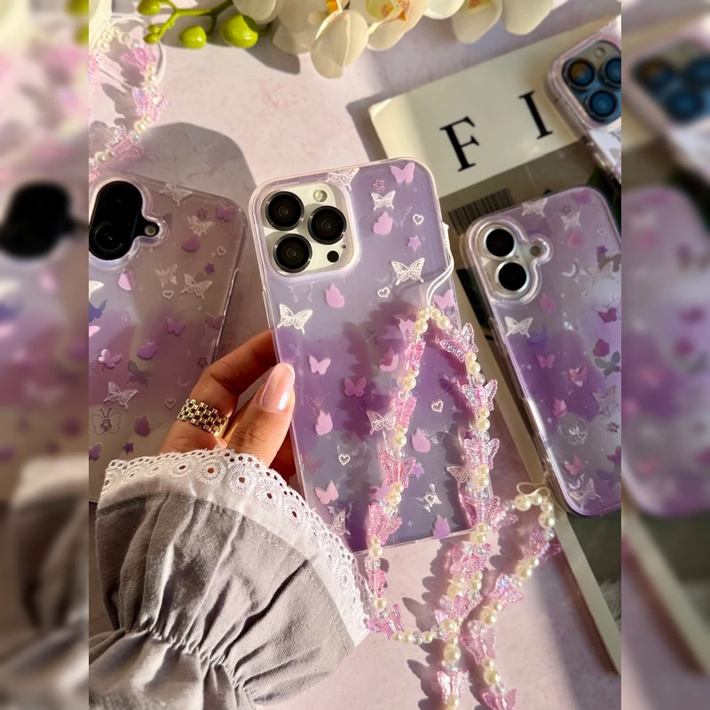 پروانه-رویایی-هولوگرامی-همراه-با-آویز-Dreamy-Hologram-Buttetfly-With-Band-1قاب و کاور گوشی موبایل اپل iPhone 16 Pro Max مدل پروانه رویایی هولوگرامی همراه با آویز Dreamy Hologram Buttetfly With Band