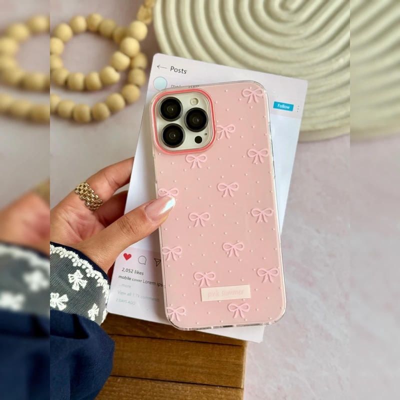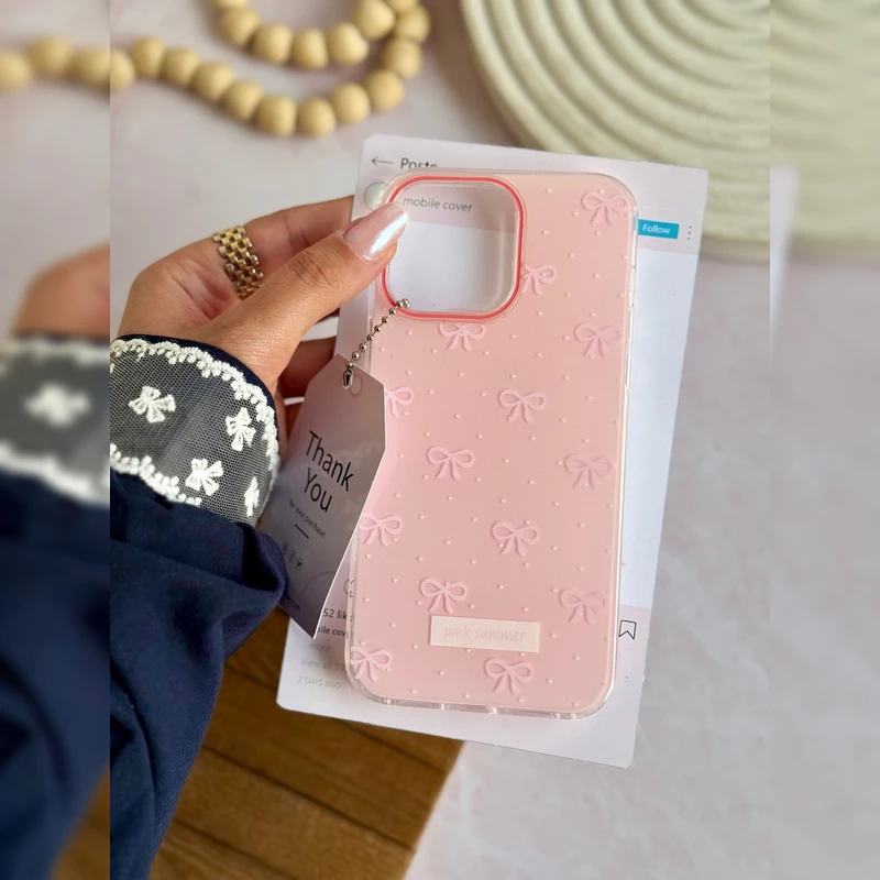 قاب پاپیون برفی Snowy Bowknot با طراحی لطیف و رنگ صورتی ملایم، انتخابی عالی برای کسانی است که به دنبال یک قاب خاص، دخترانه و متفاوت برای گوشی اپل iPhone 15 Pro Max خود هستند. این قاب با پاپیونهای برجسته و نقاط ریز شبیه برف، جلوهای فانتزی و زمستانی به گوشی شما میبخشد.